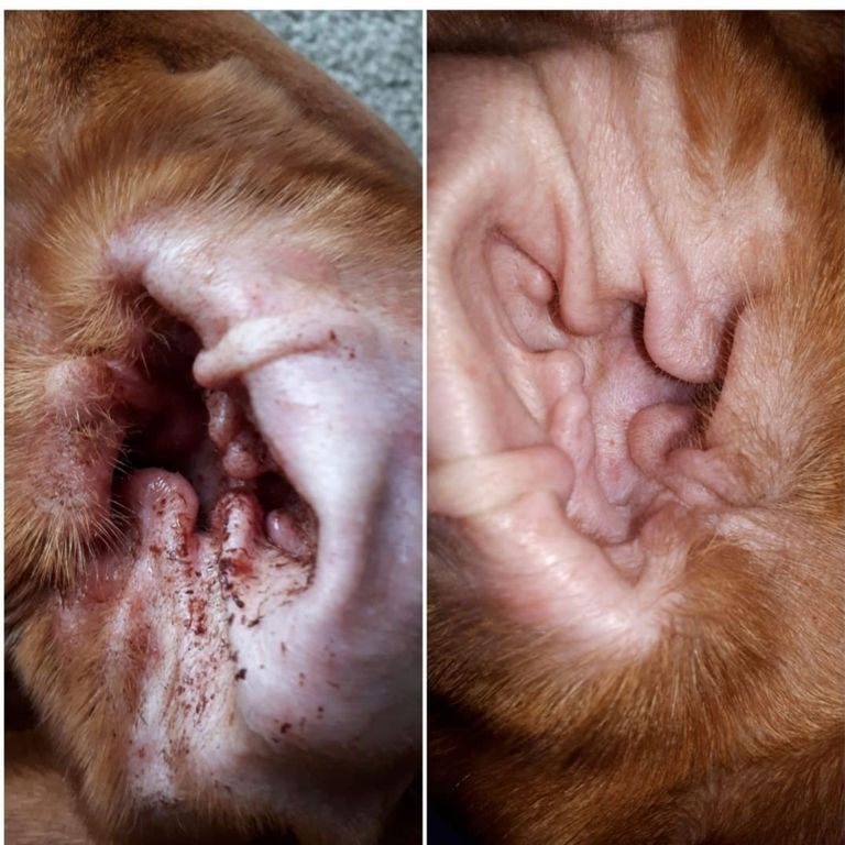 Das Bild zeigt die sogenannten Ohrenprobleme vor und nach einer Darmsanierung.